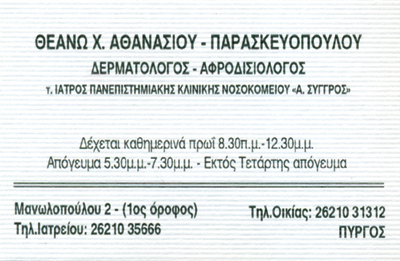 ΑΘΑΝΑΣΙΟΥ - ΠΑΡΑΣΚΕΥΟΠΟΥΛΟΥ ΘΕΑΝΩ