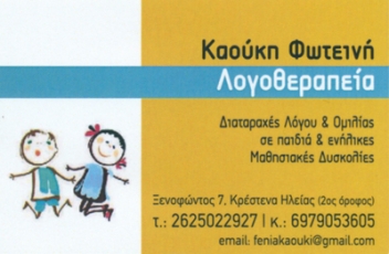 Συνεδρίες κατ΄οίκον σε όλη την Ηλεία, Κέντρο Λογοθεραπείας & ειδικών μαθησιακών δυσκολιών
